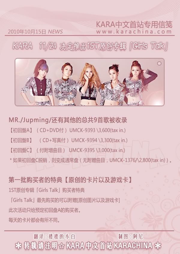 KARA 11/24决定推出1ST原创专辑[Girls Talk]