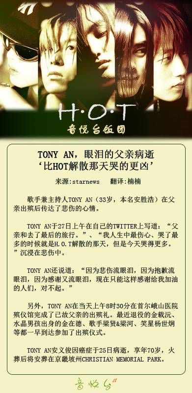 Tony An,父亲病逝‘比HOT解散那天哭得更凶’