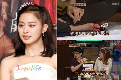 金泰熙在被問到“如果可以的話,想把身體的那個部位換掉”時,回答說,“腳趾分很開,很想換掉”.聽了金泰熙回答的節目MC劉載錫和金元熙頓時露出驚慌失措的神情,說“就這樣???”引來一片笑聲.