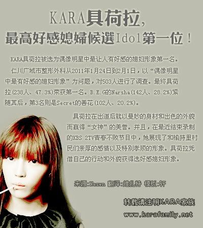 KARA具荷拉,最高好感媳妇候选Idol第一位