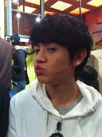 9日下午,KBS2电视台在twitter上公开了BEAST梁耀燮的一张照片,并写道:“梁耀燮脸上的口红!嘴唇的主人公是谁?”