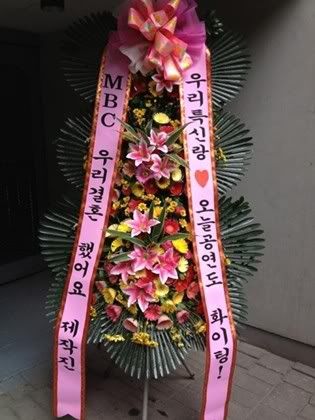 同时公开的照片是“我们结婚了”为利特演出送来的祝贺花环,写着:“我们特新郎今天公演也加油 – MBC‘我们结婚了’制作组。”