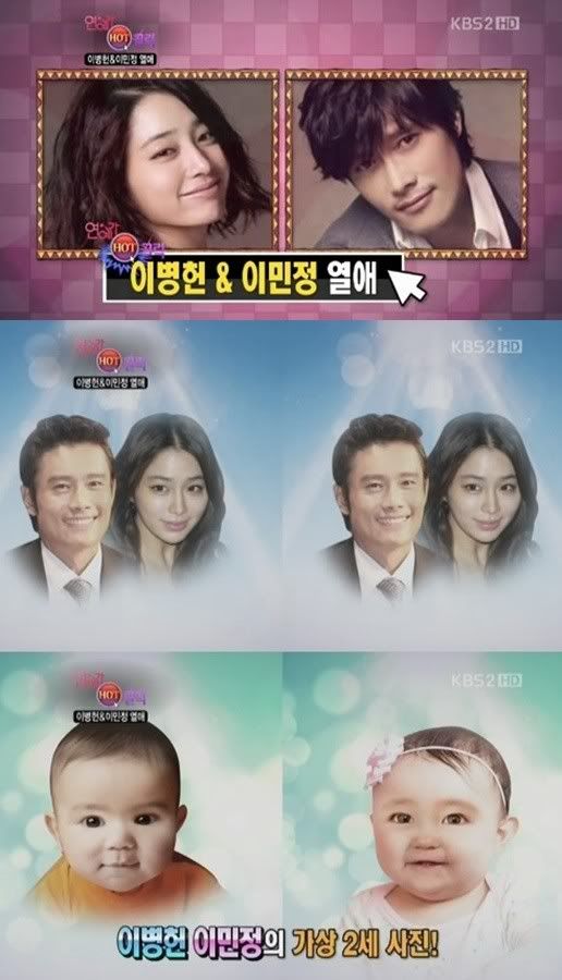 该节目还播出了李秉宪和李敏贞的第二代假想照片。一张是儿子的照片,另一张是女儿的照片,五官显眼,酷似俩人的婴儿模样,吸引了不少人的视线。