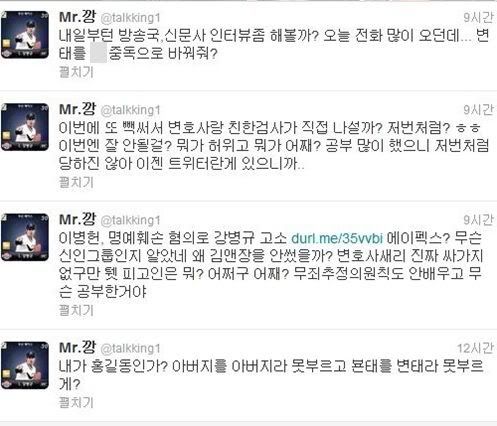 20日,姜炳奎在自己的Twitter留言:"李变态?改名了吗?这么快就过来咬了",表达了自己对李秉宪起诉的心情,更加引发了关注。