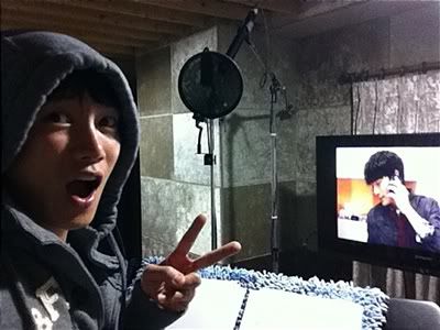 演员池城公开近况,25日在me2day上留言:“我在进行我们电影后期工作中..录音中一张调皮的表情!这里是录音室..很有气氛可以集中。我独自一人关在这里,我是监禁状态。”