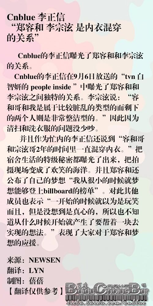 CNBLUE李正信“郑容和李宗泫是内衣混穿的关系”